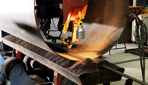 螺旋鋼管是以帶鋼卷板為原材料,經常溫擠壓成型,以自動雙絲雙面埋弧焊工藝焊接而成的螺旋縫鋼管。螺旋鋼管將帶鋼送入焊管機組,經多道軋輥滾壓,帶鋼逐漸卷起,形成有開口間隙的圓形管坯,調整擠壓輥的壓下量,使焊縫間隙控制在1~3mm,并使焊口兩端齊平。